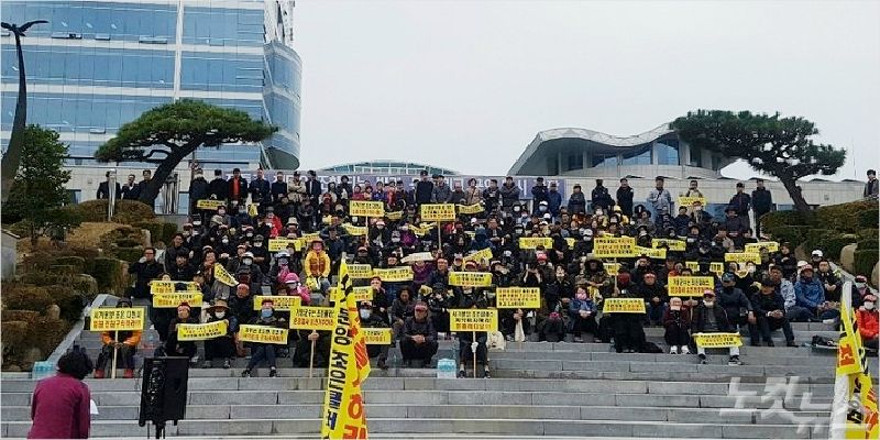 부산 기장군 정관지역에 큰 영향을 미친 한 건설사로부터 사기 피해를 당했다고 주장하는 투자자들이 12일 오후 1시 기장군청 앞에서 대규모 집회를 열었다. (사진='조은D&C 피해자 모임' 제공)