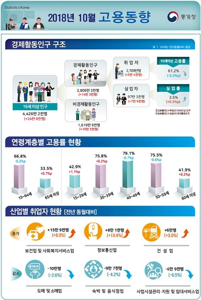 전체 실업률도 3.5%로 전년동월대비 0.3%p 올라 2005년 10월 3.6% 실업률을 기록한 이후 가장 높았다.