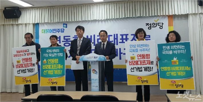 더불어민주당 경북도당과 정의당 경북도당은 14일 포항시청에서 공동기자회견을 갖고 정치권의 '연동형 비례대표제' 도입을 강력히 촉구했다.