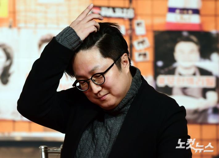 박경덕PD가 19일 오후 서울 영등포구 타임스퀘어에서 열린 올리브 새 예능프로그램 ‘국경없는 포차’ 제작발표회에 참석해 몰카 논란에 대해 입장을 밝히고 있다.