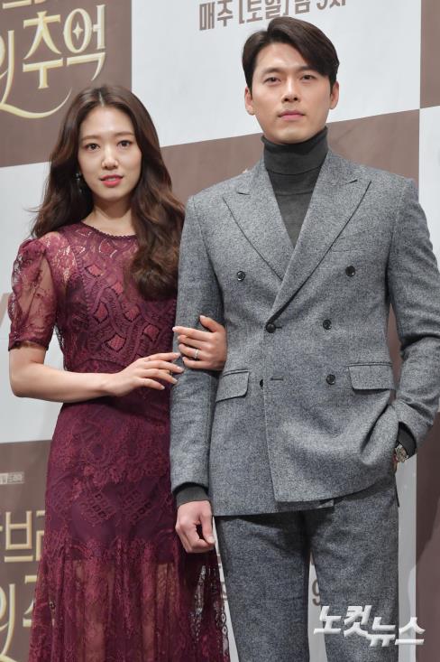 배우 현빈과 박신혜가 28일 서울 논현동 임피리얼팰리스 서울에서 열린 tvN 드라마 '알함브라 궁전의 추억' 제작발표회에서 포즈를 취하고 있다.