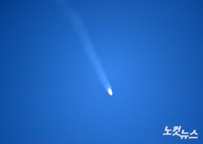 시험발사체가 발사되고 있다. 이번 발사체는 2021년 발사될 '누리호'에 쓰일 75톤급 액체엔진의 성능을 검증하기 위한 것으로 길이 25.8m, 최대지름 2.6m, 무게 52.1톤의 시험용 발사체이다. (사진공동취재단)