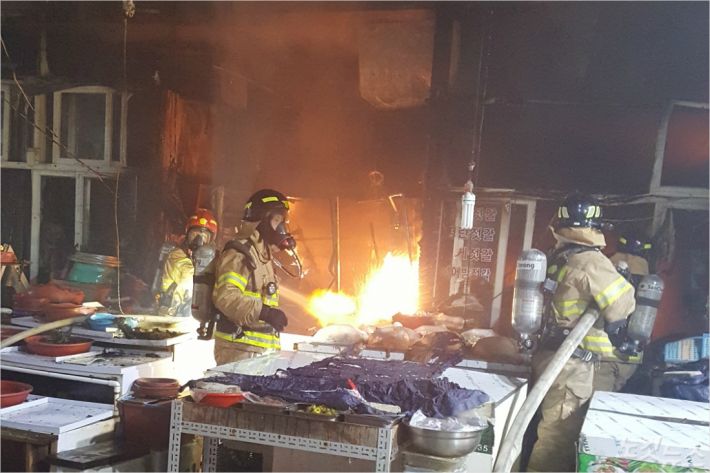 5일 오후 10시 42분쯤 경남 통영시 서호동 서호시장 내 1층 점포에서 불이 났다.