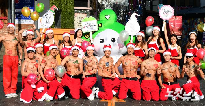 크리스마스를 나흘 앞둔 21일 오후 서울 명동에서 아놀드 홍을 비롯한 스포츠 트레이너들이 사랑의 장기기증 거리 캠페인을 벌이고 있다. 이번 행사는 사랑의장기기증운동본부가 장기기증 희망 등록을 독려하고자 마련했다.