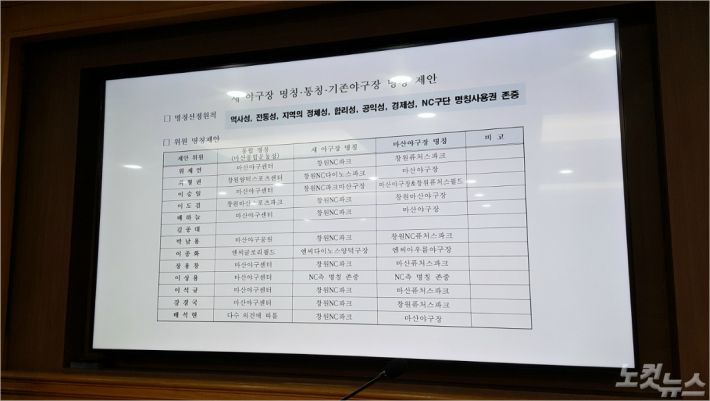 창원시 새 야구장 명칭 선정위원회가 20일 오후 회의를 열고 새 야구장NC파크'로 결정했다. (경남CBS 이상현 기자)