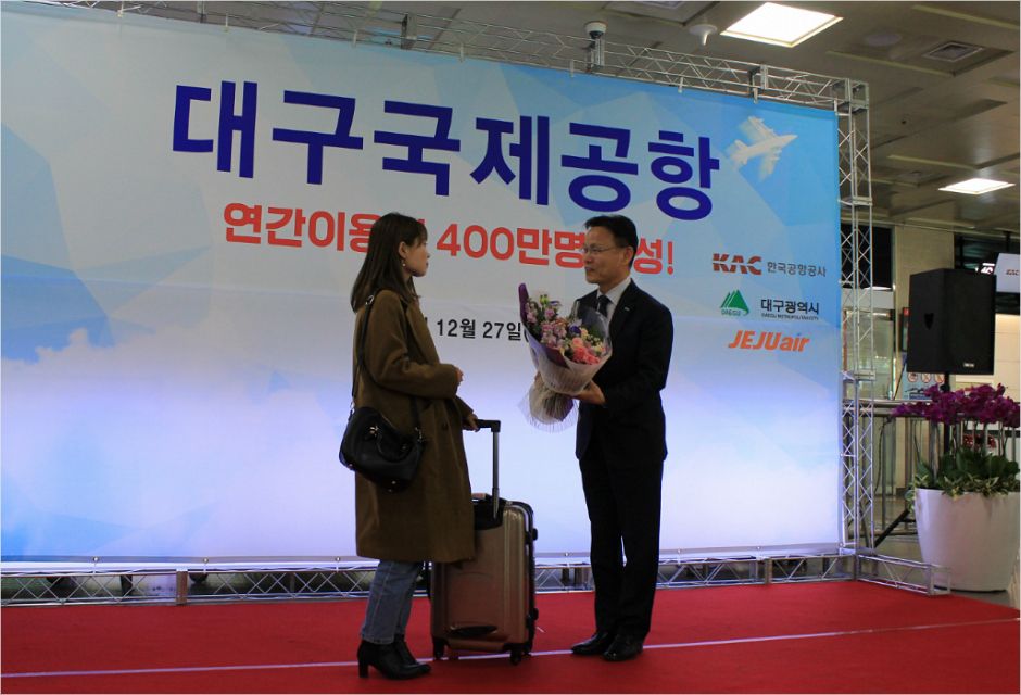한국공항공사 대구지사는 이날 11시 30분 가고시마에서 출발해 대구에 도착하는 항공편을 기점으로 대구공항 이용객이 400만명을 돌파했다고 밝혔다.