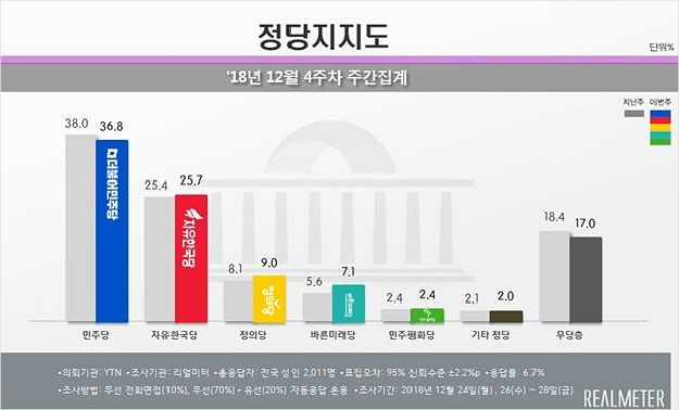 ◆ 이택수> 이번 조사는 24일부터 28일까지 5일간 25일 크리스마스를 제외한 나흘 동안 전국 19세 이상 유권자 3만 129명에게 통화를 시도해서 최종 2011명이 응답을 완료했고요. 표본 오차는 95% 신뢰 수준에서 ±2.2%포인트였습니다.