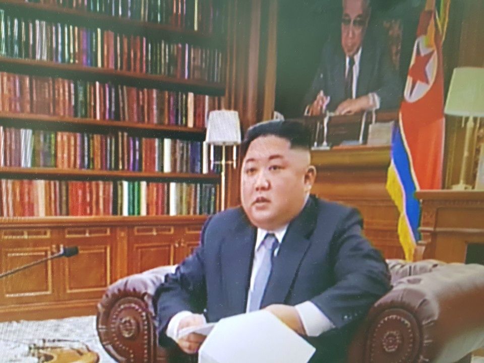 김 위원장은 웅장한 규모의 회의장에서 당·군·정 간부들이 운집한 가운데 단상에서 연설하던 예전과 달리 집무실로 보이는 곳에서 소파에 앉아 신년사를 발표했다.