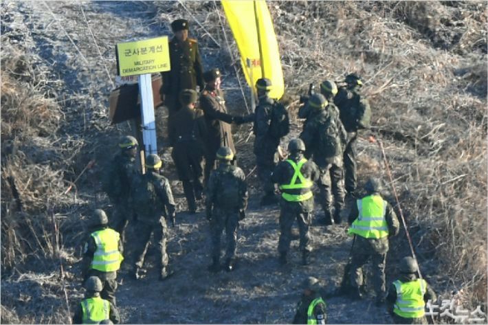남북 군인들은 1953년 휴전협정 이후 처음으로 DMZ의남북을 잇는 오솔길을 만들어