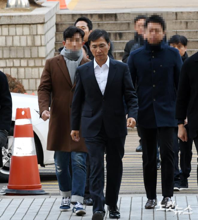 수행비서를 성폭행한 혐의에 대해 1심에서 무죄를 선고받은 안희정 전 충남도지사가 4일 오전 서초구 서울고등법원에서 열린 항소심 2차 공판에 출석하고 있다.