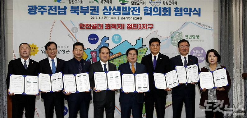 광주 북구와 광산구, 전남 담양·장성군 등 자치단체장들과 기초의회 의장들은 8일 오전 10시 광주과학기술진흥원에서 '상생발전협의회'를 구성하고 본격 운영에 나섰다.