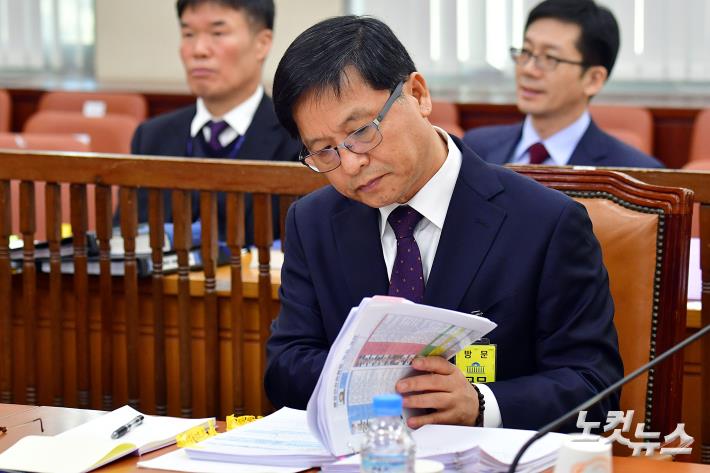 조해주 중앙선거관리위원 후보자가 9일 오전 국회에서 열린 인사청문회에서 자료를 살펴보고 있다.(이날 자유한국당은 조 후보자의 정치 편향 문제를 이유로 인사청문회에 불참했다.)