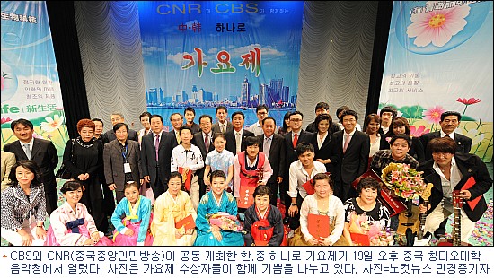 CBS와 중국중앙인민방송(CNR)공동주최로 19일 오후 중국 산둥(山東)성 칭다오(靑島)에서 열린 <한중 하나로 가요제>가 참가자들의 열창과 관중들의 열띤 응원 속에 성황리에 열렸다.