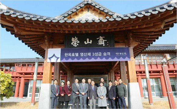 전라남도 영암군 나불도에 위치한 한옥호텔 영산재가 전라남도 한옥호텔 가운데 오동재 이후 두 번째로 3성 등급을 획득하고, 지난 23일 한옥호텔 3성급 현판식을 진행하였다.
