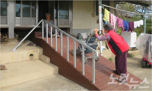 지난 가을 장성군이 다리가 불편한 어머니를 위해 시골집의 마루와 마당을 연결하는 경사로를 무료로 설치해 준 것이다.