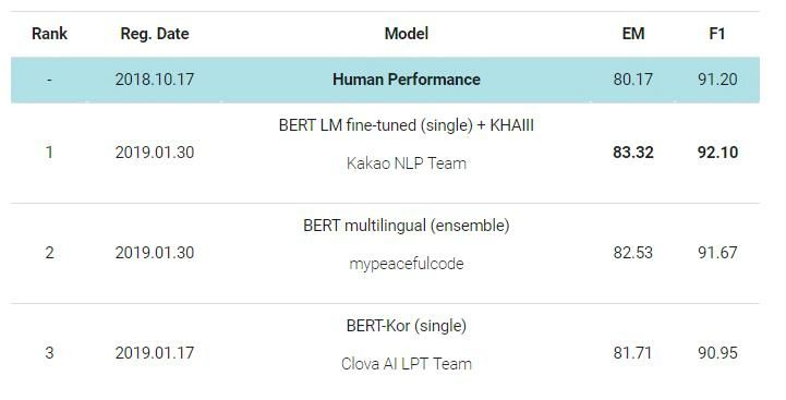 카카오 AI 한국어 독해능력, 인간 앞서