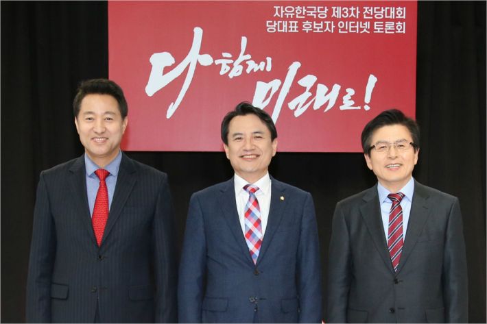 오세훈 한국당 당대표 후보(왼쪽부터), 김진태 후보, 황교안 후보.(사진=연합뉴스)
