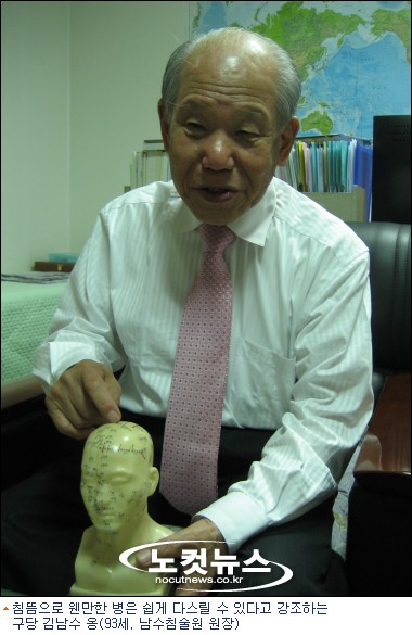 우리나라 마지막 침구사로 알려진 김남수 옹(93세. 남수침술원 원장). 우리나라에 침구사는 40여 명이 남아있지만 실제로 활동하는 이는 김남수 원장이 거의 유일하다.