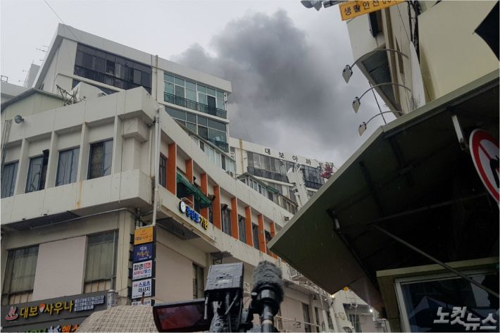 19일 오전 7시 11분쯤 대구 중구의 한 주상복합건물 4층 대보사우나에서 불이 나 2명이 숨지고 70여 명이 부상을 입었다. (사진=류연정 기자)