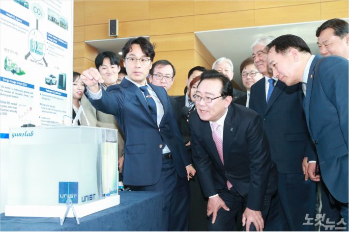 이어 열린 수소산업 육성 세미나에서는 울산과학기술원 백종범 교수, 김건태 교수가 루테늄 촉매와 메탈·이산화탄소 시스템에 의한 수소 대량생산 방안 발표와 함께 소규모 시험생산 시연을 했다.