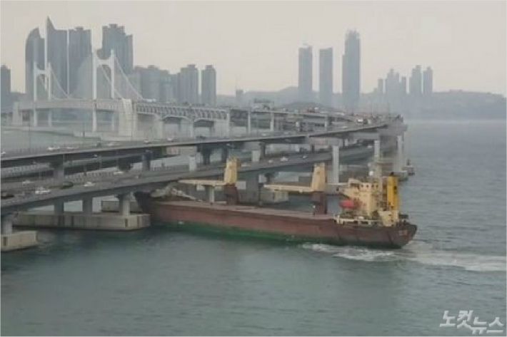 요트를 들이받은 씨그랜드호는 이후 방향을 틀어 광안대교로 돌진해 하판 10~11번 사이 교각과 충돌했다.