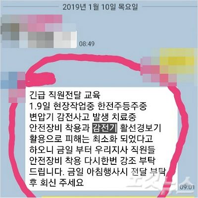 이들은 "이런 최악의 산업안전법 위반 사고에도 회사는 전기감전기 지급으로 피해를 최소화 했다는 단체문자를 전국 지사에 전파하고 끝내 치료중인 병원공개조차 거부하는 등 사고축소와 은폐 등 감추기에만 급급했다"고 강하게 비판했다.