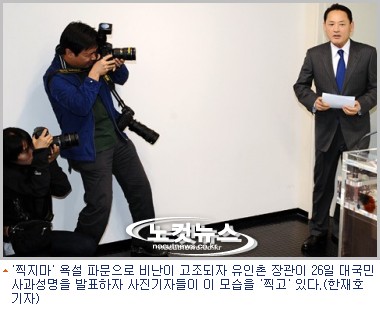 유 장관은 파문이 커지자 한국사진기자협회 국회사진기자단에 전화를 걸어 "당시 갑자기 카메라 플래시가 터져 나 자신도 모르게 그런 말이 튀어나왔다"면서 "이유야 어찌 되었건 잘못했고 사과한다"고 밝힌 데 이어 26일 대국민 사과를 했다.