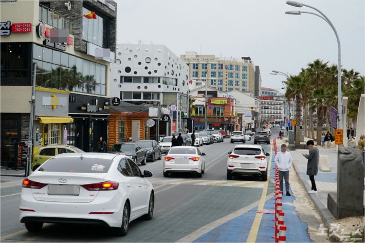 9일 오후 제주시 조천읍 함덕해수욕장. 번화한 거리에서 울려 퍼지는 최신 대중가요 음악이 관광객을 맞이했다. 가족과 연인들은 푸른 바다를 배경으로 사진 촬영을 하거나 카페에서 대화를 나누며 즐거운 한때를 보냈다.