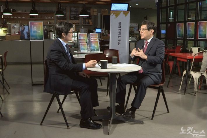 임성빈 장로회신학대학교 총장(우측)이 CBS TV와 인터뷰를 나누고 있는 모습.