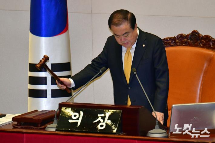 문희상 국회의장이 13일 오전 국회 본회의에서 의사봉을 두드리고 있다.