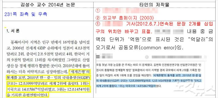 2014년 김 전 총장의 짜깁기 의혹 논문(사진=제보자 제공)