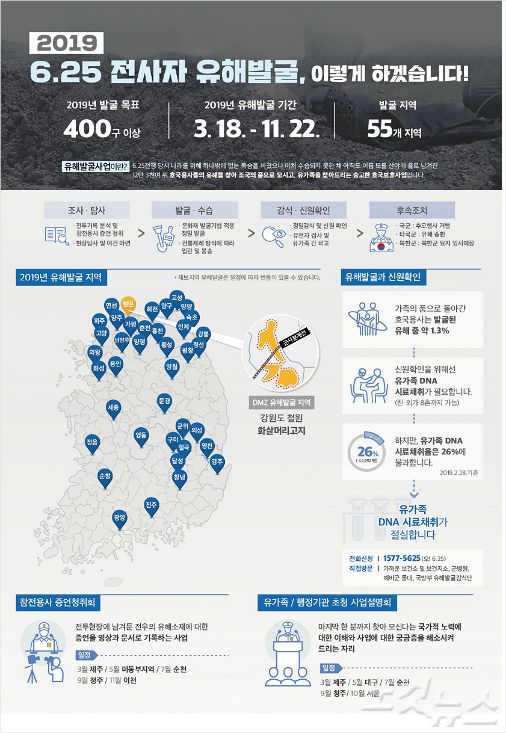 지난해에는 65개 제보지역에서 34구의 유해를 발굴했으며, 올해에도 26개 제보지역에 대해서 집중 발굴이 이뤄질 계획이다.