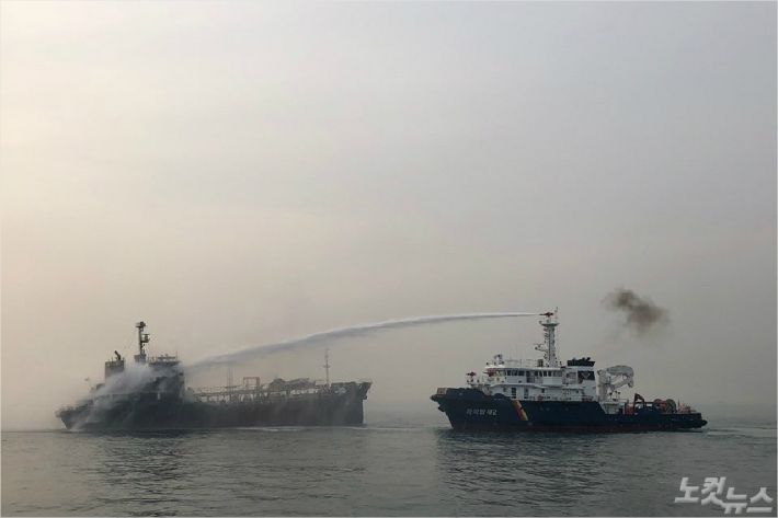 해경은 화재 진화 도중 폭발 위험과 해상 유류오염 대비 등 2차 사고 예방에 나섰다.
