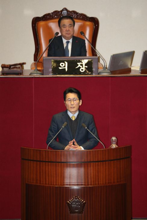 그는 "우리만 OECD 국가 중 유일하게 선거연령을 19세로 제한하고 있다"며 "우리 청소년들이 무엇이 부족해서 안된다고 하는지 이해할 수 없다. 획일화된 역사교과서를 반대하고 촛불을 들어 대한민국을 바꿨던 지금의 청년들이 바로 2년 전 고등학생들이었다"고 목소리를 높였다.