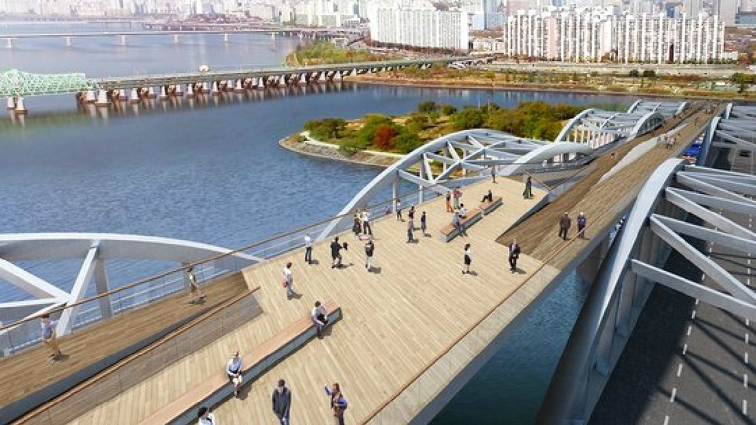길이 500m의 보행교에는 전망대와 이벤트광장, 미니잔디밭 등 다양한 즐길거리를 배치한다. 서울시는 5월 중 국제설계 공모를 추진하고, 연내 설계를 마무리한 뒤 내년 착공해 2021년 6월 시민에게 개방한다는 목표를 세웠다. 총사업비는 300억원이다.