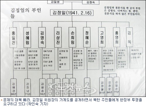 이와 함께 도표로 자세히 소개된 ''김정일의 부인들''이라는 제목의 김정일 가계도가 한눈에 들어온다.