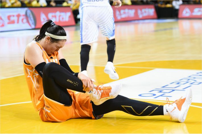다만 박지수는 경기 막판 가슴 철렁한 순간을 맞았다. 수비를 하다가 오른 발목이 접질려 실려나간 것. 워낙 체구가 큰 만큼 심각한 부상이 우려됐다. 박지수가 없는 KB의 우승은 장담할 수 없는 상황이었다.