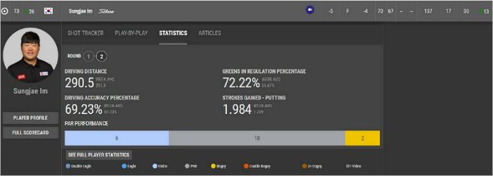공동 29위로 대회를 시작한 임성재는 2라운드에 버디 6개를 잡는 동안 보기를 2개로 줄며 순위를 끌어올렸다. 임성재는 대회 첫날 버디 5개를 잡고도 보기도 4개나 범했다.