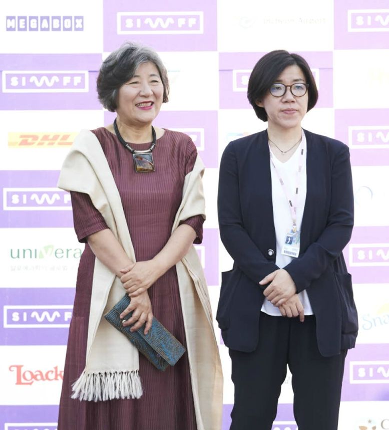 지난해 5월 31일 열린 제20회 서울국제여성영화제 개막식에서 이혜경 이사장과 김선아 집행위원장의 모습 (사진=서울국제여성영화제 제공)