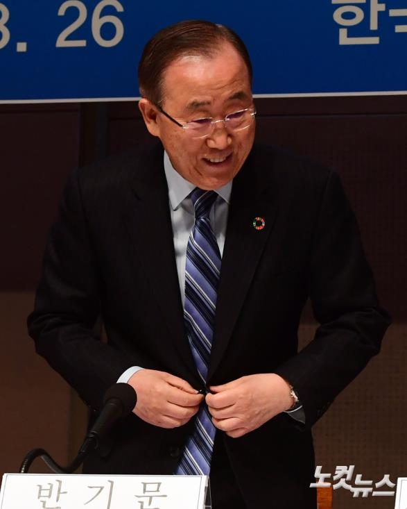 반기문 전 유엔 사무총장이 26일 오후 서울 중구 한국프레스센터에서 열린 관훈토론회에 참석해 고개숙여 인사하고 있다.