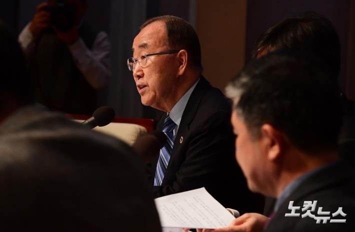 반기문 전 유엔 사무총장이 26일 오후 서울 중구 한국프레스센터에서 열린 관훈토론회에 참석해 발언하고 있다.