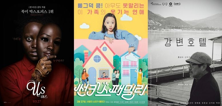 27일 개봉한 영화 '어스', '썬키스 패밀리', '강변호텔' (사진=각 배급사 제공)