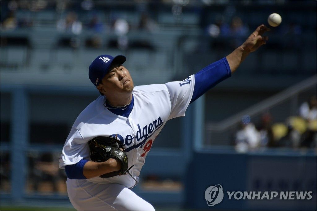 '내가 에이스' LA 다저스 류현진이 29일(한국 시각) 애리조나와 2019 메이저리그 개막전에 한국인으로는 2001년 박찬호 이후 18년 만에 선발 투수로 등판해 역투를 펼치고 있다.(LA=연합뉴스)