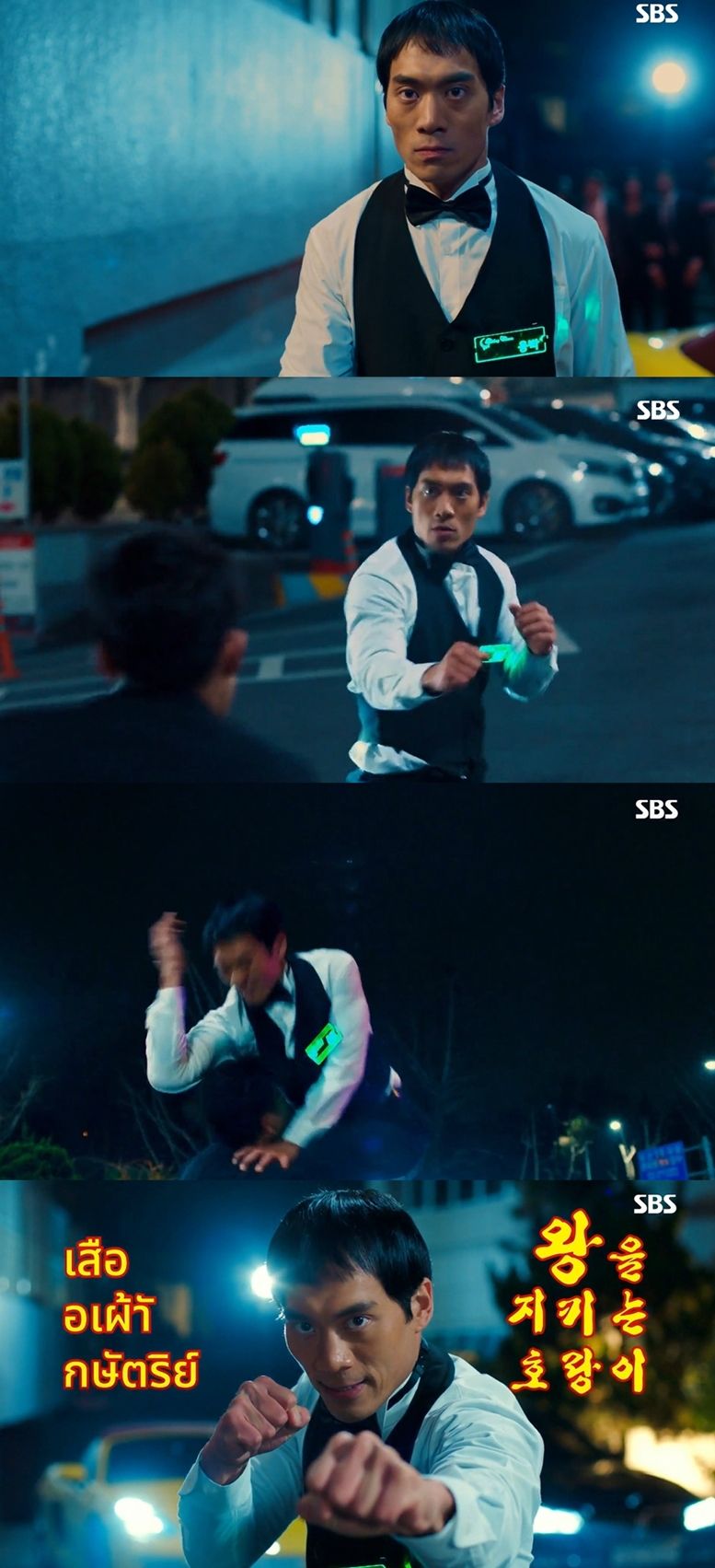 29일 방송된 SBS 금토드라마 '열혈사제' 최고의 1분을 기록한 쏭삭의 무에타이 장면 (사진='열혈사제' 캡처)