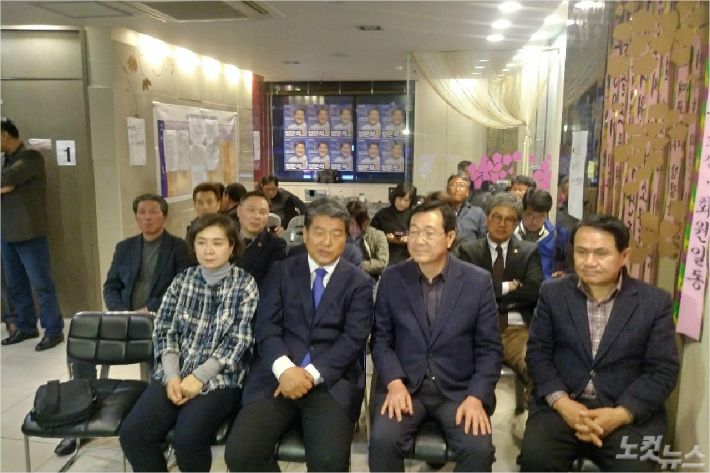 반면, 정 후보 캠프에서는 박수와 환호의 목소리가 터졌다. 한국당의 한 지지자는 "이길 줄 알았다"며 기뻐했다.