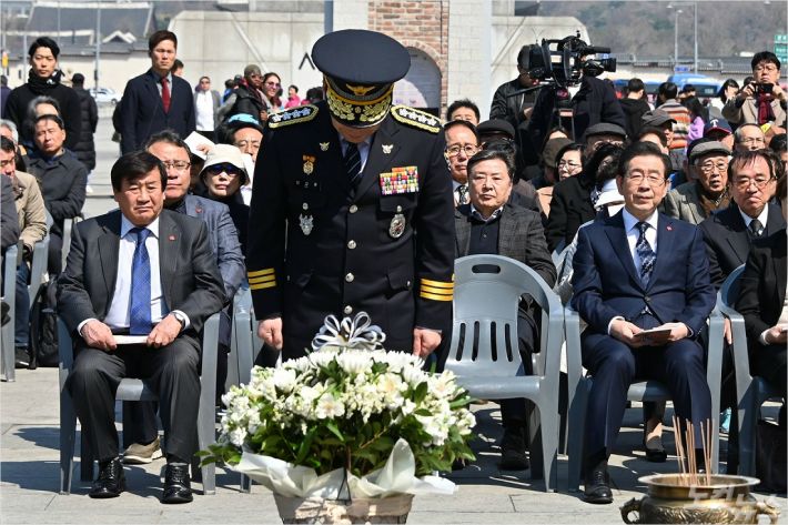 민갑룡 경찰청장도 이날 오전 서울 광화문광장에서 열린 추념식에 참석해 "4.3 당시 무고하게 희생된 모든 분들의 영정에 머리 숙여 애도의 뜻을 표한다"고 밝혔다.