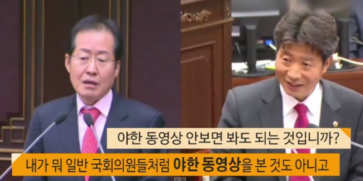 그러자 홍 전 지사는 "내가 일반 국회의원들처럼 야한 동영상을 본 것도 아니지 않냐"며 "굳이 내가 잘못한 거라고 보지 않는다"고 말해 날 선 신경전을 보였다.
