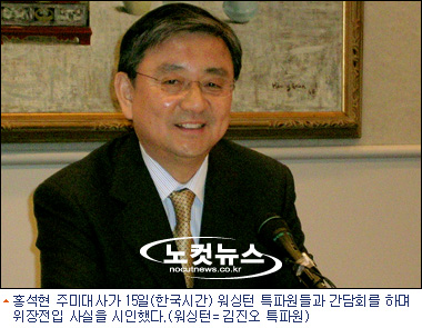 홍석현 주미 대사는 15일(한국시간) 워싱턴에서 특파원들과 간담회를 갖고 "자신의 재산은 7백 30억원대"라면서 "이 과정에서 부인과 어머니의 위장전입을 통해 부동산을 구입했다"고 밝혔다.