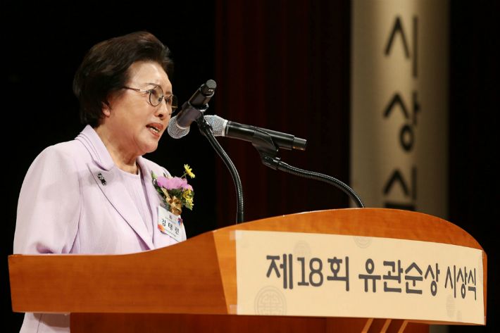 김태련 이사장은 "3·1절 100주년 및 유관순 열사의 서훈등급이 대한민국장으로 상향된 뜻깊은 해에 유관순상을 수상하게 돼 영광이다"라며 "유관순 열사의 애국애족 정신을 계승해 우리사회의 약자를 보호하고 저출산 문제를 해결해 나가는데 노력할 것"이라고 말했다.