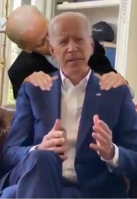 지난 2015년 애슈턴 카터 당시 국방장관 취임식에서 바이든이 카터 장관 부인의 어깨에 두손을 얹고 머리에 코를 갖다댄 장면을 가져와 합성한 것으로 보인다.